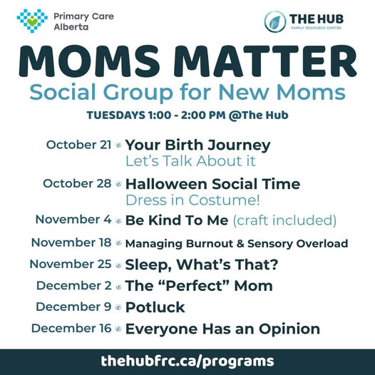 In partnership with Primary Care Alberta, this group provides a warm and welcoming space to connect with other new and expecting moms. Join us to share experiences, build friendships, and receive valuable information and resources on parenting and maternal wellness.