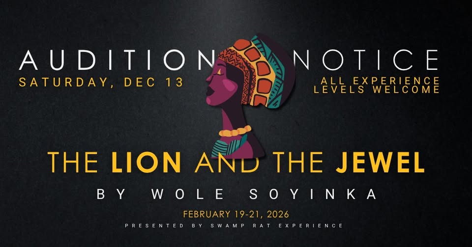 Swamp Rat Experience proudly presents Wole Soyinka’s play brilliant play The Lion and the Jewel at King Street Theatre on February 19-21, 2026 and invite performers aged 16 and up of all experience levels to audition!