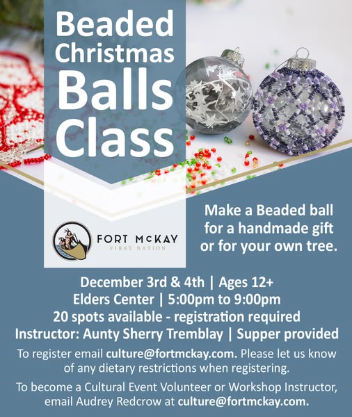 Registration is required. To register email culture@fortmckay.com. Please let us know of any dietary restrictions when registering.