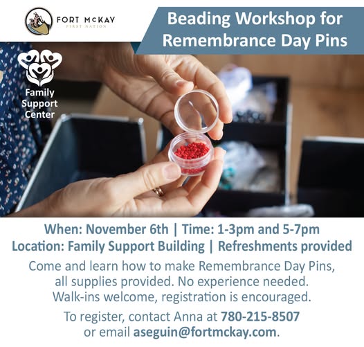 To register contact Anna at 780-215-8507 or email aseguin@fortmckay.com