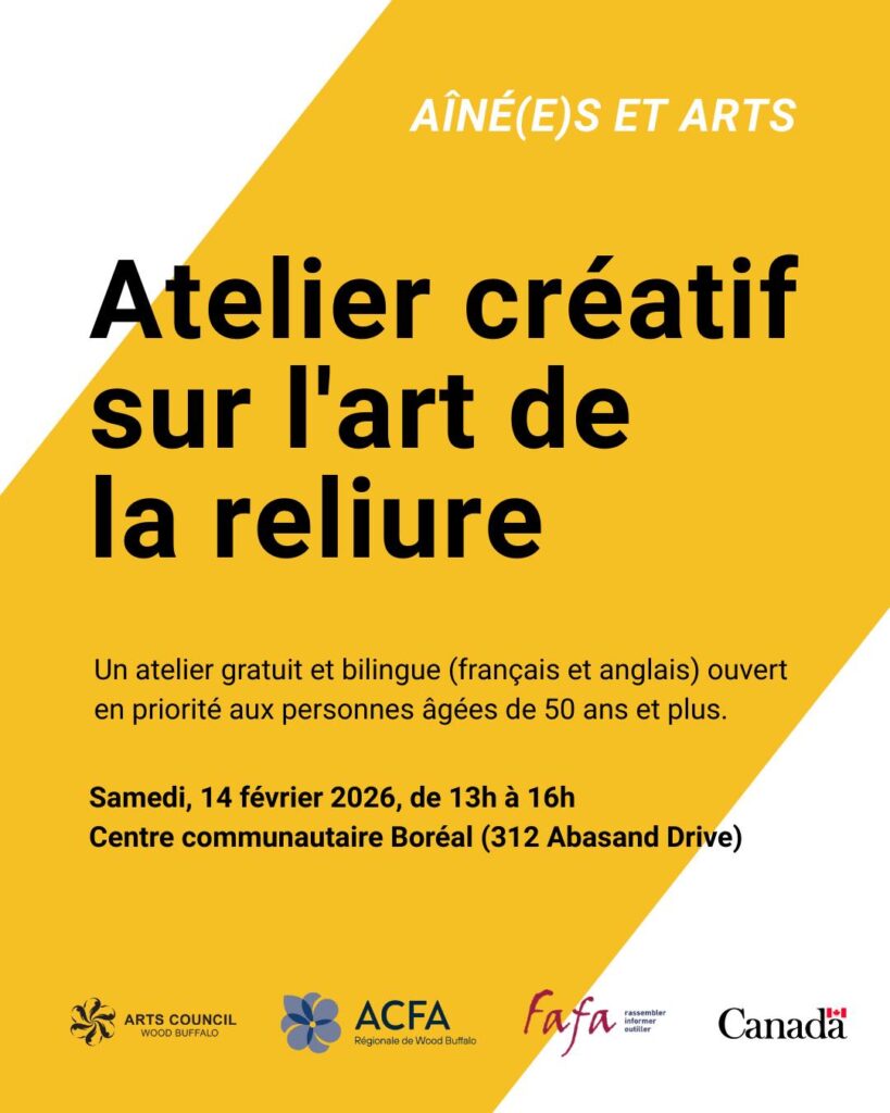 Arts Council Wood Buffalo, ACFA Régionale Wood Buffalo, and the FAFA Fédération des aînés franco-albertains are coming together to offer another hands-on, bilingual creative workshop for seniors in our region.