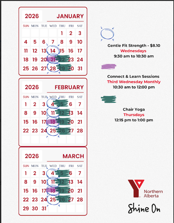 A great opportunity to stay active and connected. Chair Yoga will be every Thursday