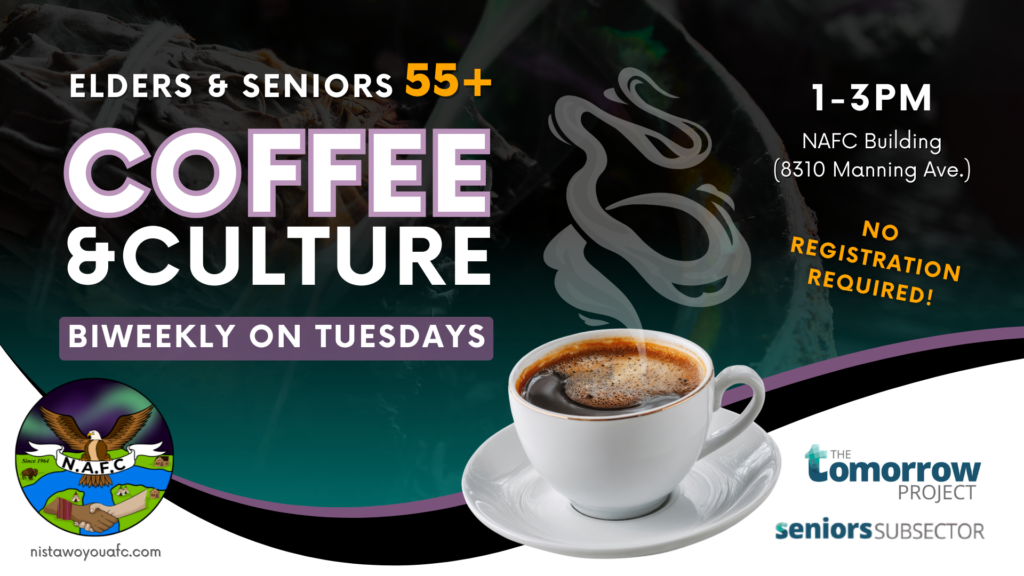 Elders & seniors 55+ are invited to join us for some coffee, tea, snacks, chats on Tuesdays! (Bi-weekly.)