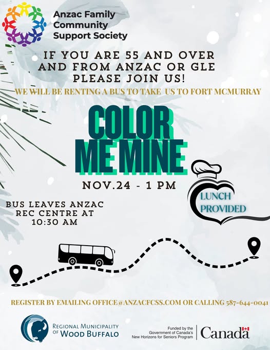 If you are 55 and over, sign up for a fun trip to Color Me Mine, bus leaves at 10:30 AM