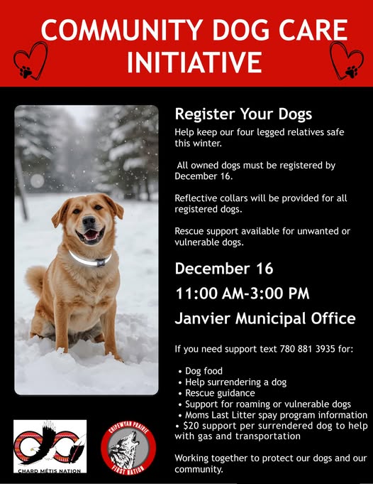 This initiative helps reduce roaming dogs, support families, and keep our four legged relatives safe through the winter. Registered dogs will receive reflective collars, and rescue support is available for unwanted or vulnerable dogs.