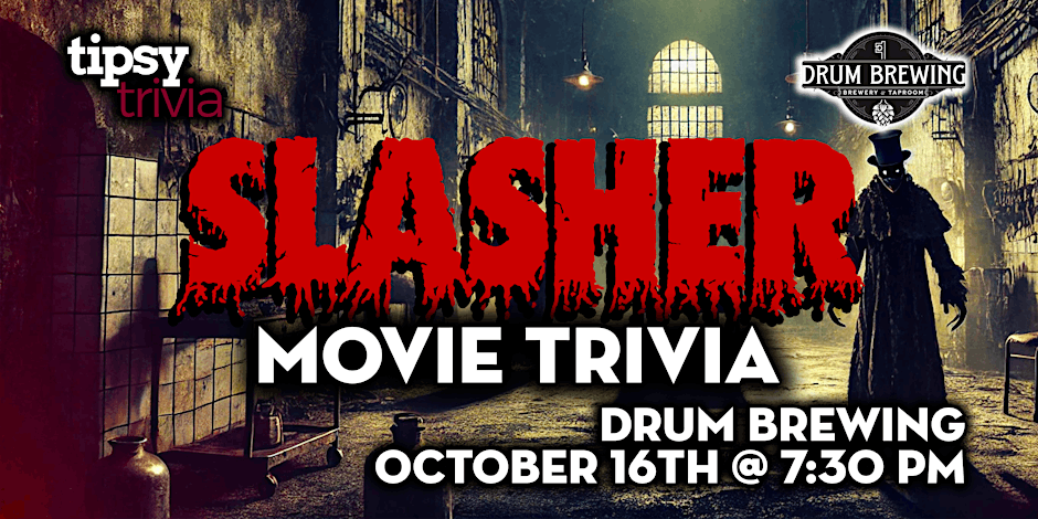 Join Tipsy Trivia and Drum Brewing Fort McMurray for a terrifyingly fun evening dedicated to slasher and horror movie classics! Sharpen your horror trivia skills and prepare to scream as you dive into iconic films, from masked villains to haunted houses. Do you have what it takes to survive questions about Freddy, Jason, and Michael Myers? 🏆😱👻