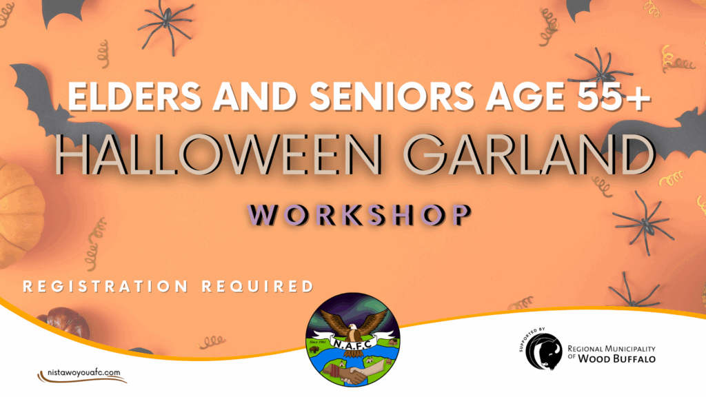 Elders and Seniors 55+ are invited to celebrate the season with a Halloween Garland Workshop at the Nistawoyou Association Friendship Centre, 1:00 to 4:00. This workshop, led by NAFC’s Volunteer Coordinator, Jen, will have participants crafting their own festive garlands to bring home, learning simple techniques to create unique seasonal decorations. All supplies are provided.