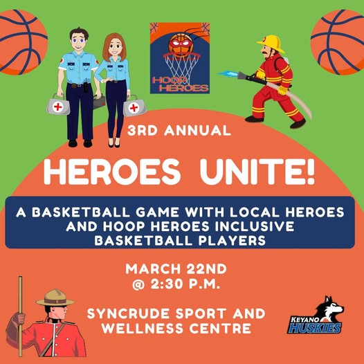 The 3rd Annual Heroes Unite Basketball Game is coming to Syncrude Sport & Wellness Centre!