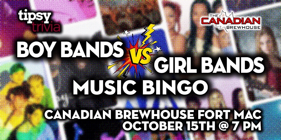 🎤👨‍🎤👩‍🎤 Get ready to relive the 90’s & 00’s with our boy band vs girl band music bingo event! We’ll be featuring hits from *NSYNC, Backstreet Boys, 98 Degrees, Spice Girls, TLC, and Destiny’s Child at The Canadian Brewhouse Fort McMurray!! Click ‘Going’ now! 👉