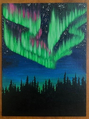 Join Georgina to create a beautiful Northern Aurora Borealis painting on canvas.