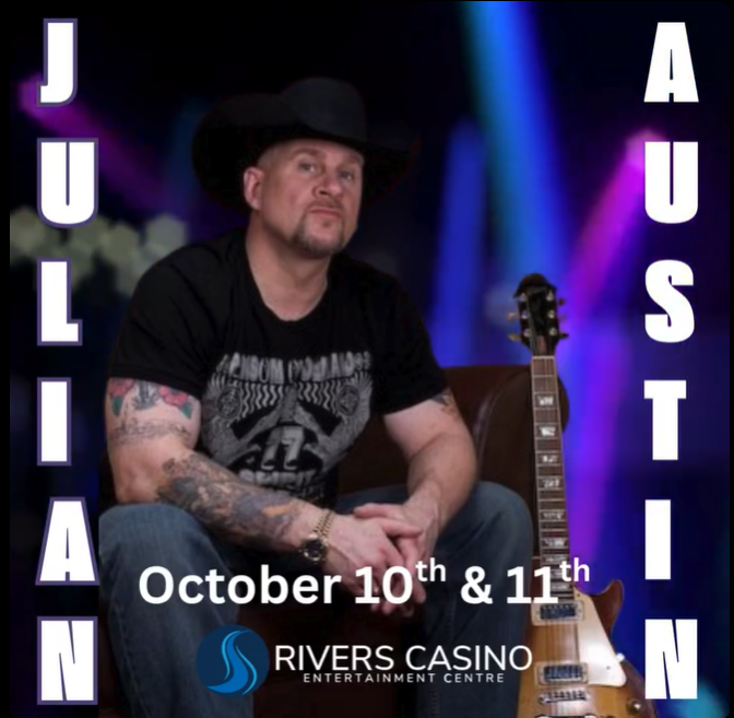 New Brunswick, Canada-born singer and songwriter Julian Austin started his professional career by performing in bars when he was still in his teens. Popular artists like Tracy Lawrence, Alan Jackson, and George Strait all influenced Austin’s rock-flavored style of country music. After a rough childhood and some days of working the rodeo circuit as an honest to goodness bull rider, which earned him a few broken ribs and some scars to remember the adventure by, Austin settled into the role of a county singer. He has won many awards for his work over the years. When not busy recording or touring, Austin lends his time and talent to worthy foundations like Camp Trillium, Children’s Wish, Alberta Sick Kids Hospital, and the Canadian Professional Rodeo Sport Medicine Association.