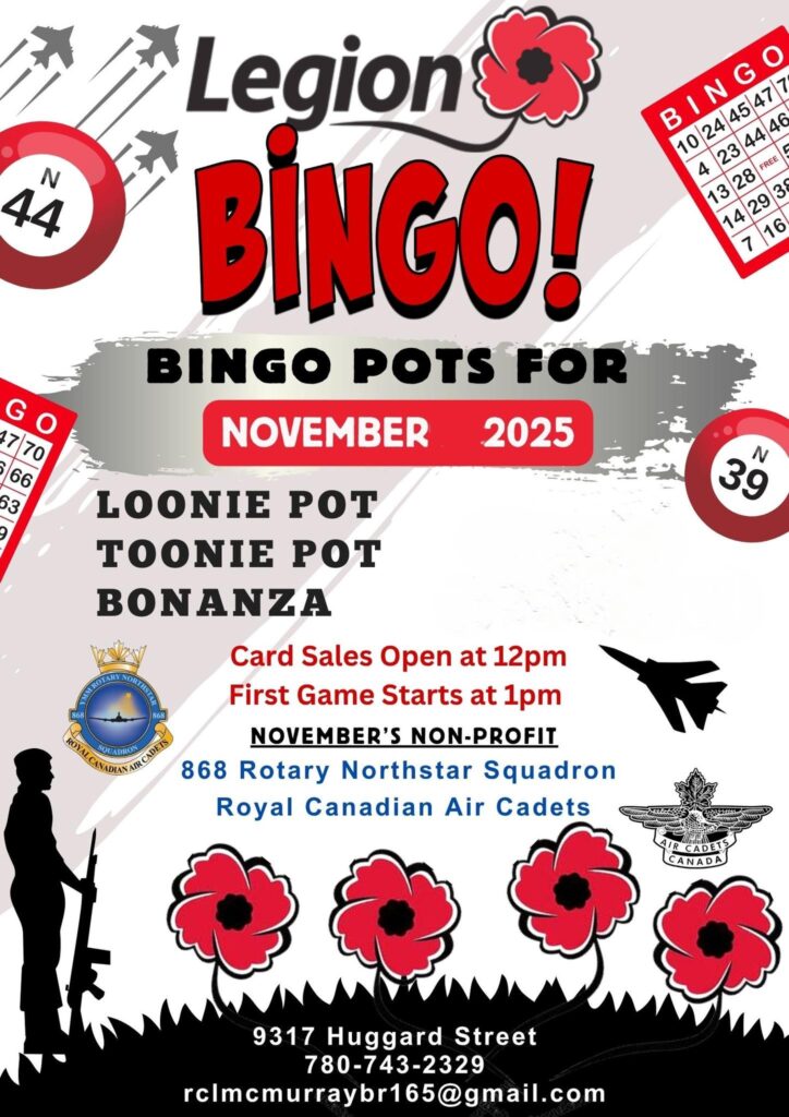 This month we have our local 868 Air Cadets, so please come support this group and show them how much they mean to this community.