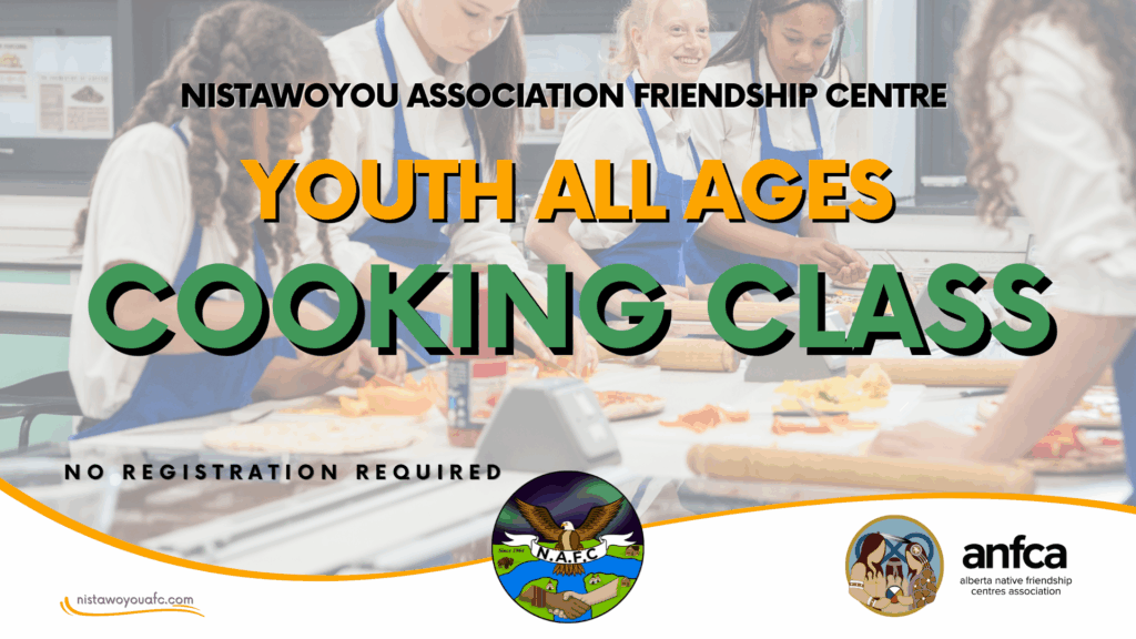 Join Knowledge Keeper Claire and Education Coordinator Jen for a fun and welcoming Youth Cooking Class at the Nistawoyou Association Friendship Centre! This beginner-friendly program invites youth and their families to learn essential kitchen skills together, including knife safety, kitchen awareness, table setting, and serving a family meal.