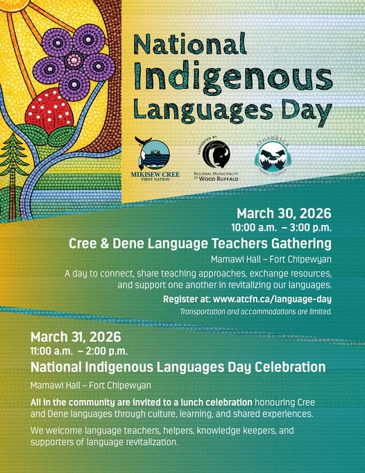 Elders, Knowledge Keepers, and language carriers are invited to gather, share, and strengthen Cree and Dene languages together. Your voice, your experience, and your presence matter in this circle.
