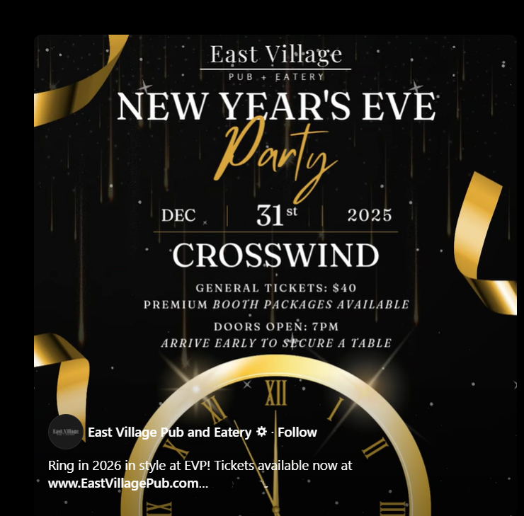 Ring in 2026 in style at EVP! Tickets available now at www.EastVillagePub.com
