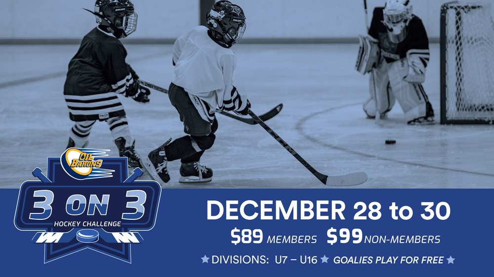 Get ready to hit the ice December 28–30, 2025 at the Oil Barons 3-on-3 Hockey Challenge! 🏒