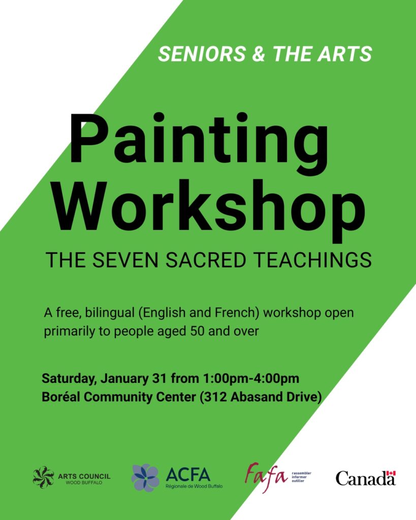 Arts Council Wood Buffalo, ACFA Régionale Wood Buffalo, and FAFA Fédération des aînés franco-albertains are joining forces to offer a unique experience to seniors in our region: