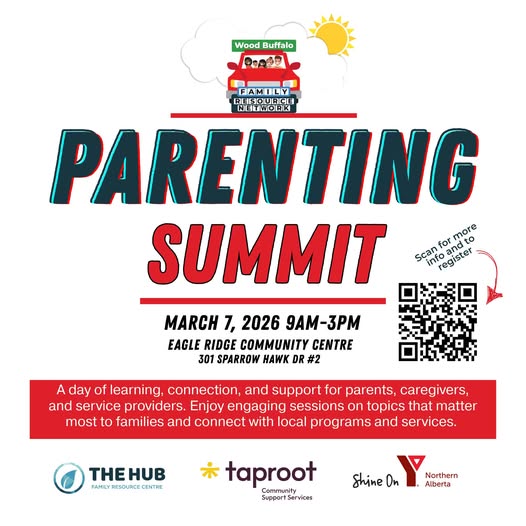 The Wood Buffalo Family Resource Network is excited to invite you for a day of learning, connection and support at our first Parenting Summit – designed for parents, caregivers and service providers. This event features sessions on topics that matter most to families as well as the opportunity to learn about and connect to new services in our community.