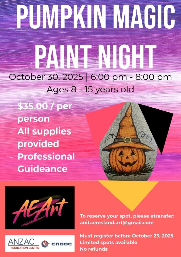 Ready to get creative? Pumpkin Magic Paint Night is happening at the Rec Centre!