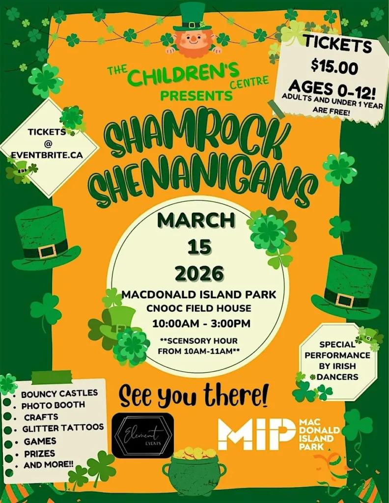 Get ready for a day full of giggles, green, and good-luck fun at Shamrock Shenanigans! Join us for a festive St. Patrick’s Day event designed for children ages 0–12 years, with activities the whole family will enjoy.
