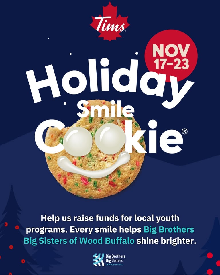 Big Brothers Big Sisters of Wood Buffalo is proud to be the local charity partner for the 2025 Tim Hortons Holiday Smile Cookie Campaign, and we need your help to make it a success!