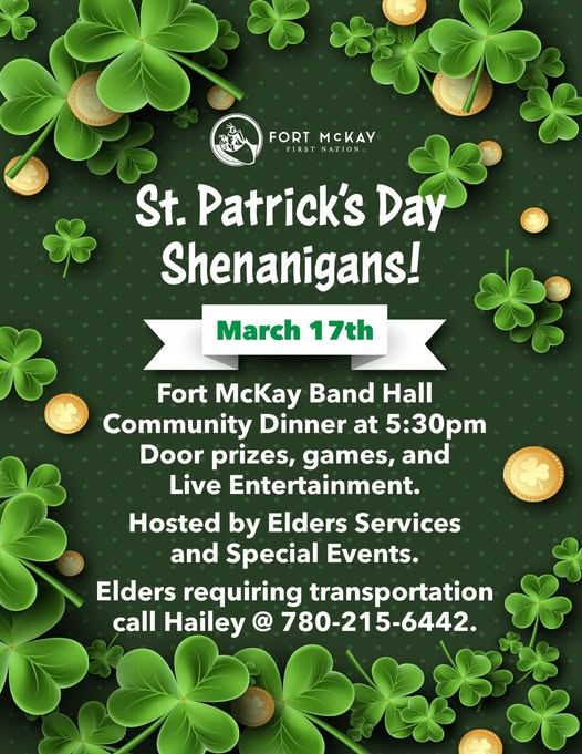 Elders requiring transportation call Hailey @ 780-215-6442
