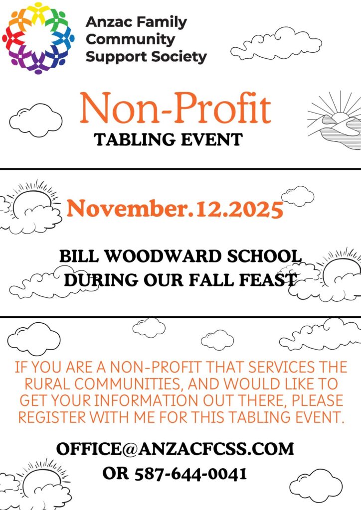 Register with me today to get your table, office@anzacfcss.com or call 587-644-0041