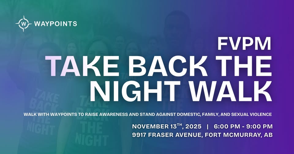 Join Waypoints for our annual Take Back the Night Awareness Walk, starting at 9917 Fraser Avenue, to stand in solidarity with individuals and families impacted by domestic, family, and/or sexual violence.