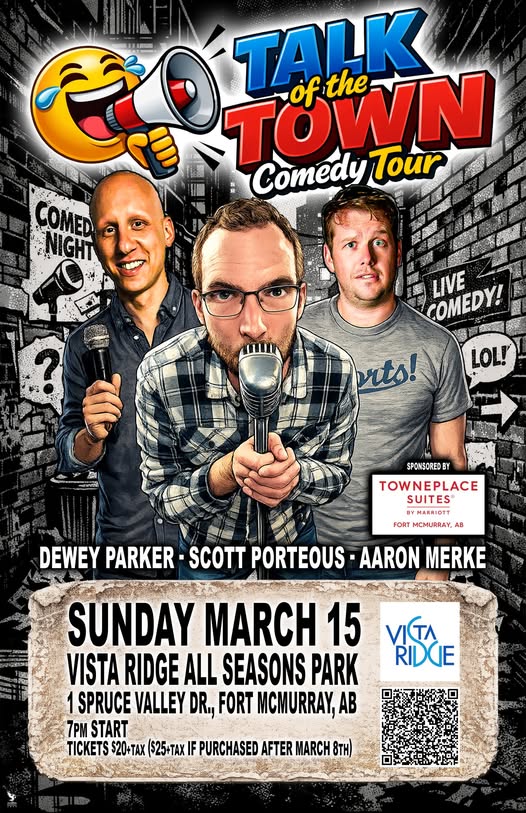 A huge shoutout to our local sponsor, TownePlace Suites by Marriott Fort McMurray. Their support helps us bring live entertainment and big laughs to our community!