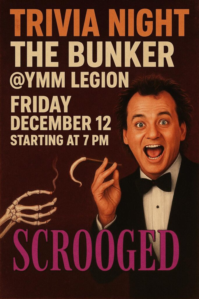 Get your holiday cheer on and join us for a Scrooged movie themed trivia night this Friday!