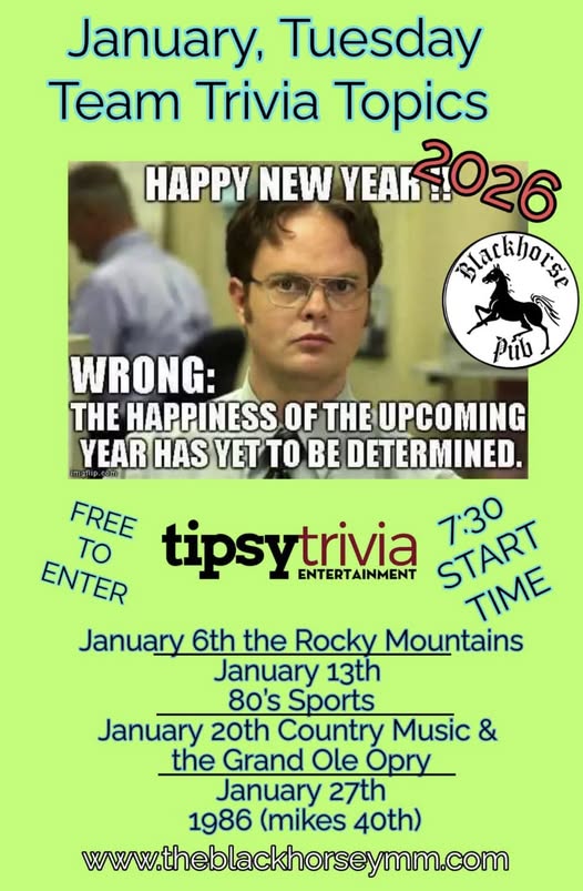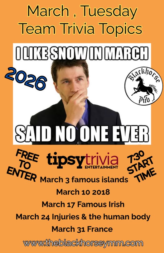 Join Tuesday team trivia at Blackhorse Pub. Each week has a different theme