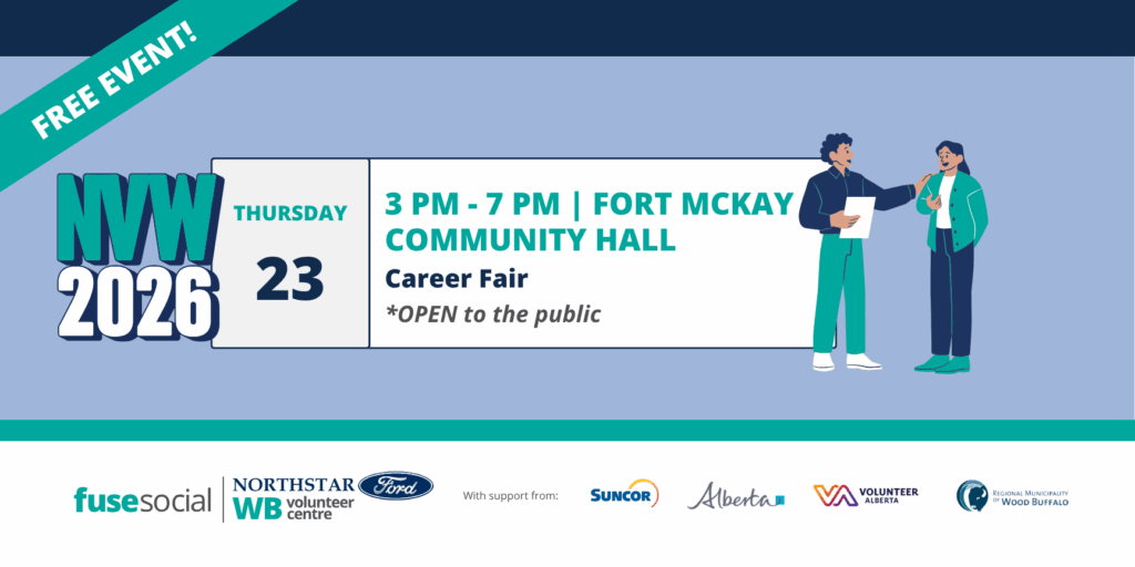 The NorthStar Ford Wood Buffalo Volunteer Centre will be set up at the RSN Career Fair at the Fort McKay Community Hall to spread volunteerism and teach about the many ways volunteer experience may help with employment.