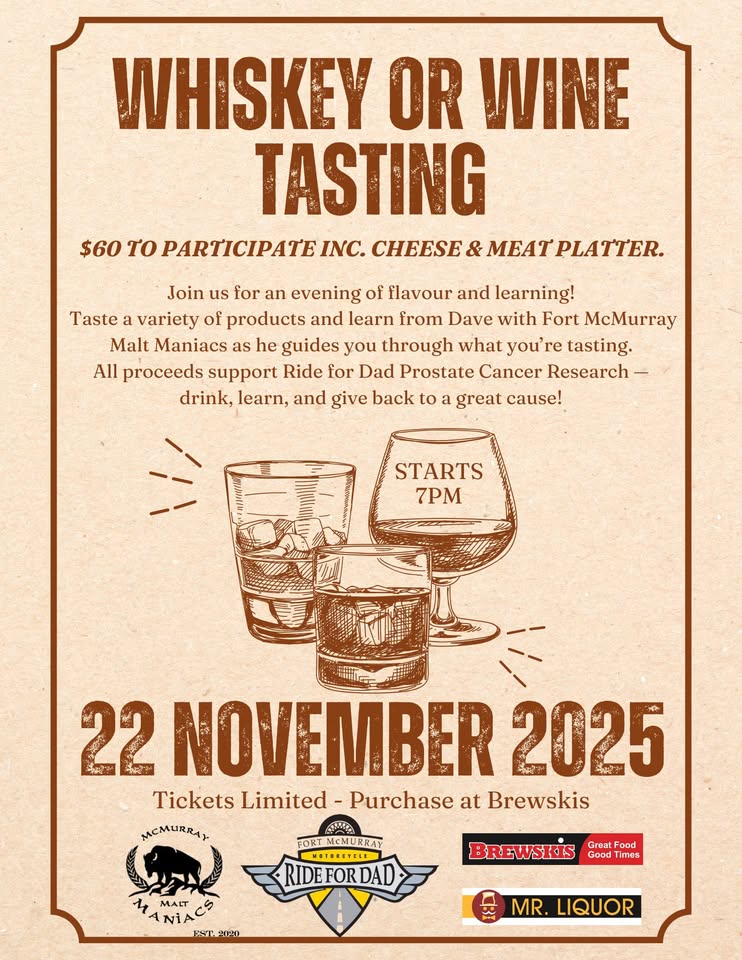 Taste a variety of products and learn from Dave with Fort McMurray Malt Maniacs as he guides you through what you’re tasting.
