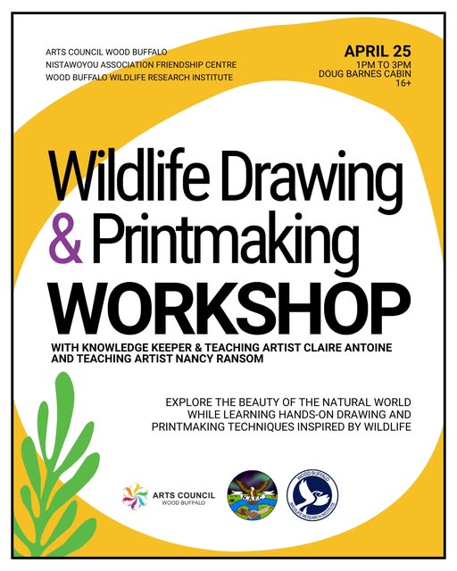 This workshop is presented in collaboration with the Nistawoyou Association Friendship Centre and the Wood Buffalo Wildlife Research Institute.