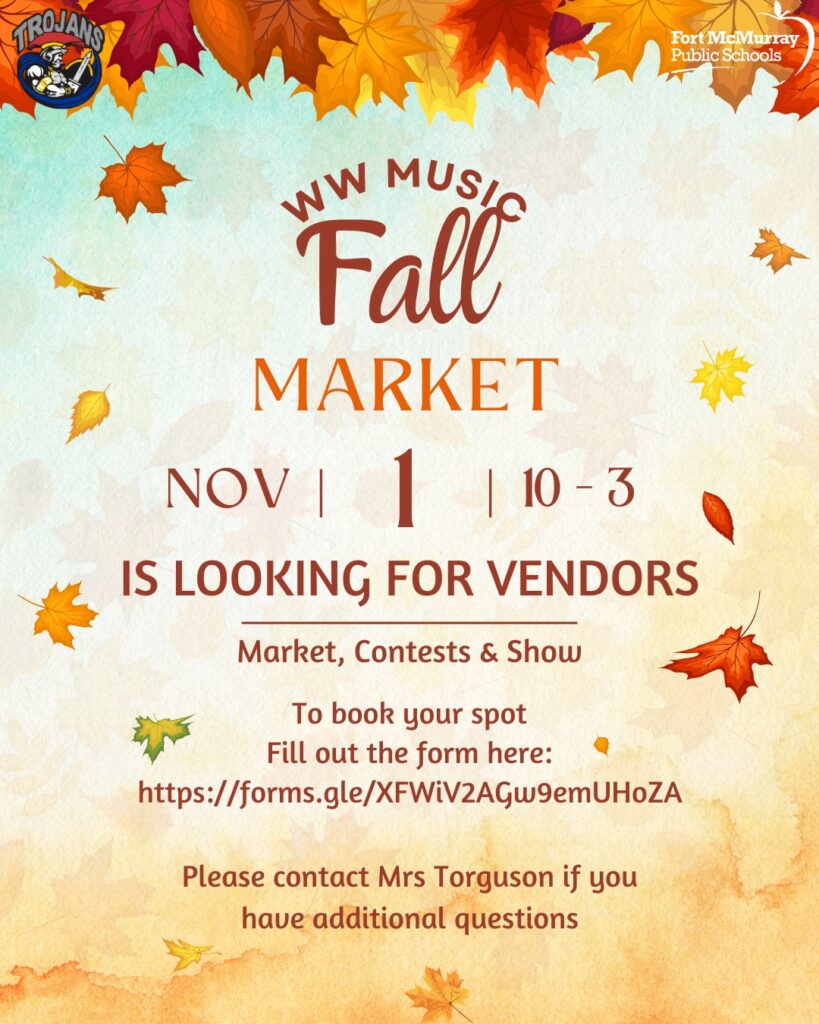 WW Music is hosting a Fall Market on November 1! We are currently looking for vendors.