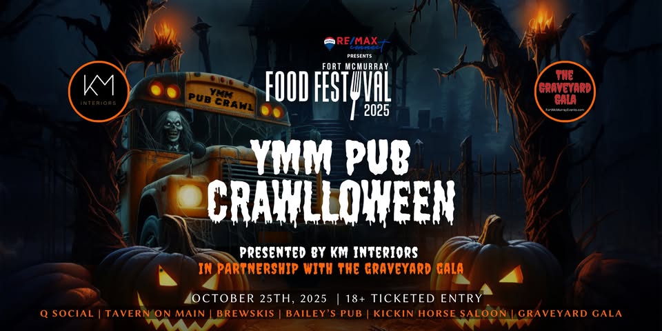 Join us for the RE/MAX Connect YMM Food Festival Pub Crawlloween, proudly presented by KM Interiors, in partnership with The Graveyard Gala, for a 2-events-for-the-price-of-1 Halloween celebration!
